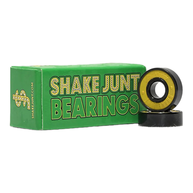 Shakes Junt's entry level bearings. Manufactured for high quality performance and every type of skating. A non-contact bearing with removable rubber shields for easy cleaning and less friction. Getcha Roll On!